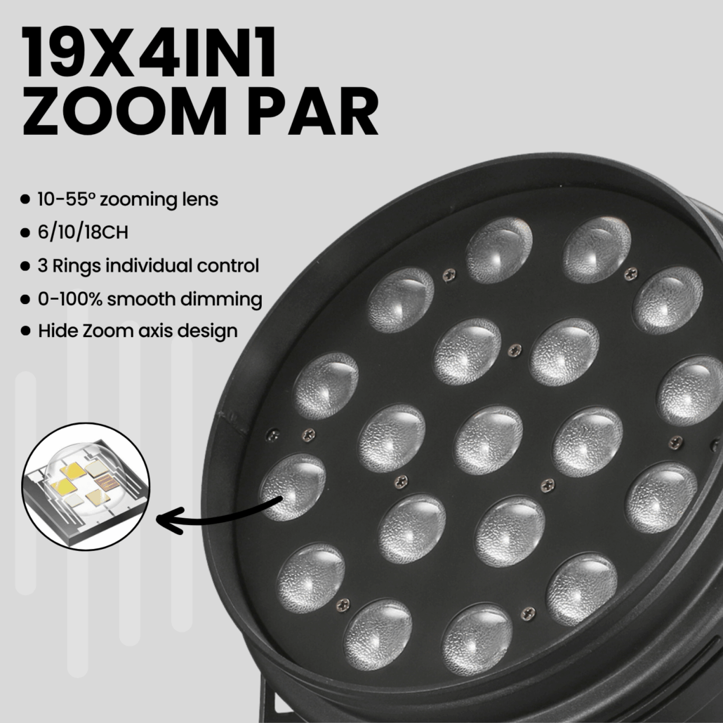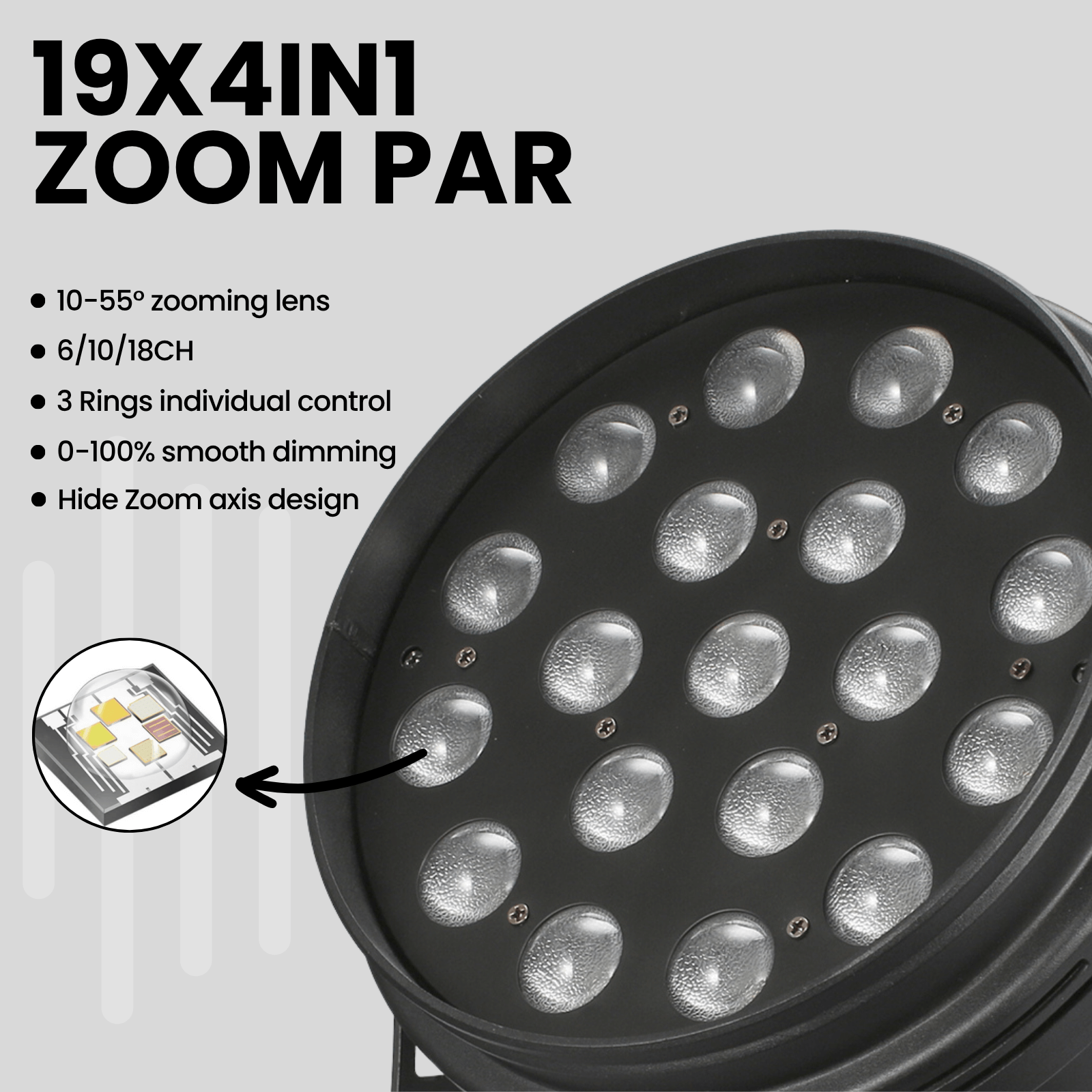 New 19x12w 4in1 Led Zoom Par Light Ring Individual Control 10/18CH